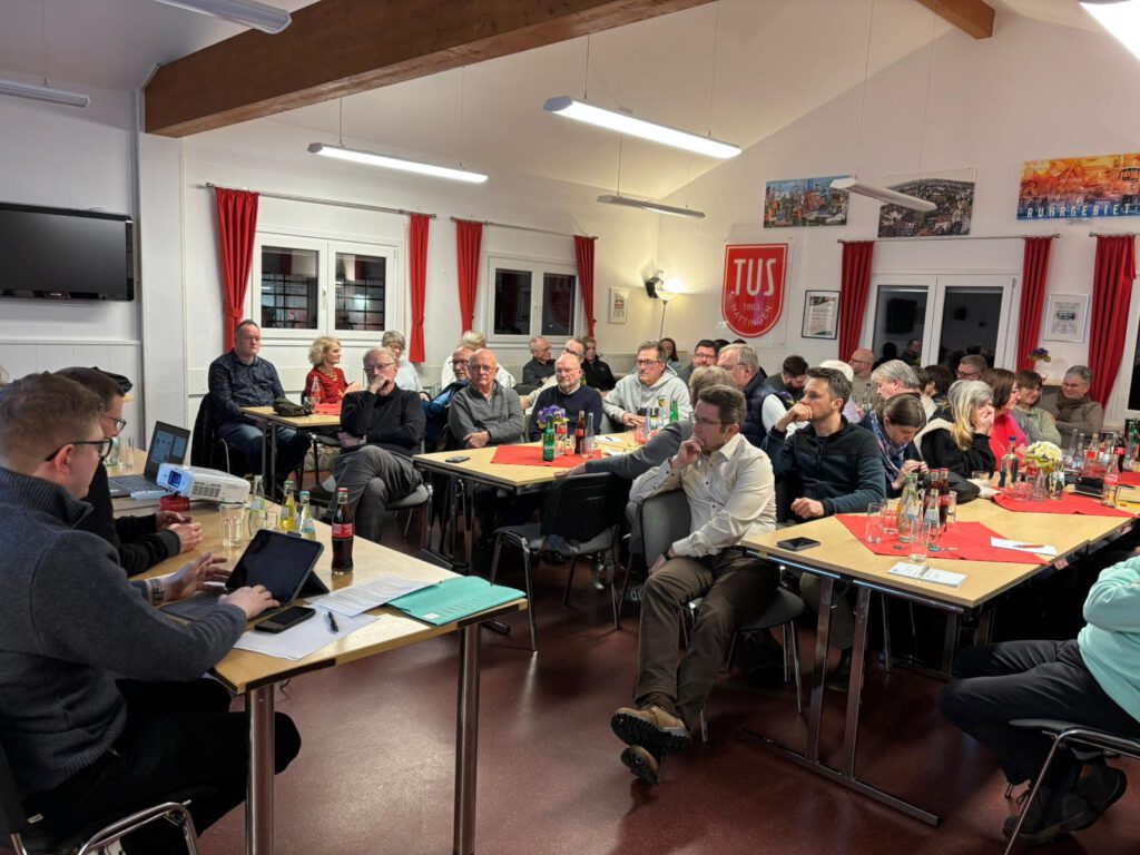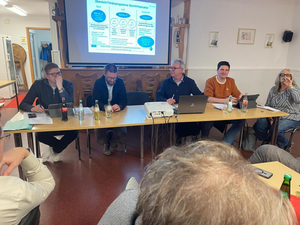 Im Rahmen des Pakts für den Sport haben die Vertreter der Politik, der Verwaltung und des Stadtsportverbandes einen regelmäßigen Stammtisch vereinbart, dieser hat nun bereits zum fünften Mal getagt. 41 Vereinsvertreterinnen und -vertreter sind der Einladung ins Vereinsheim des TuS Hattingen gefolgt und haben sich rege ausgetauscht. Im Mittelpunkt standen Informationen zu den Förderprogrammen des Bundes und Landes für die Sportinfrastruktur. Die Begrüßung erfolgte durch Bürgermeisterin Melanie Witte-Lonsing, den Vorsitzenden des Sportausschusses Michael Kreutz, Sportdezernent Matthias Tacke und den Vorsitzenden des Stadtsportverbands Michael Heise, der anschließend eine Übersicht über die Struktur des Förderprogramms ermöglichte.